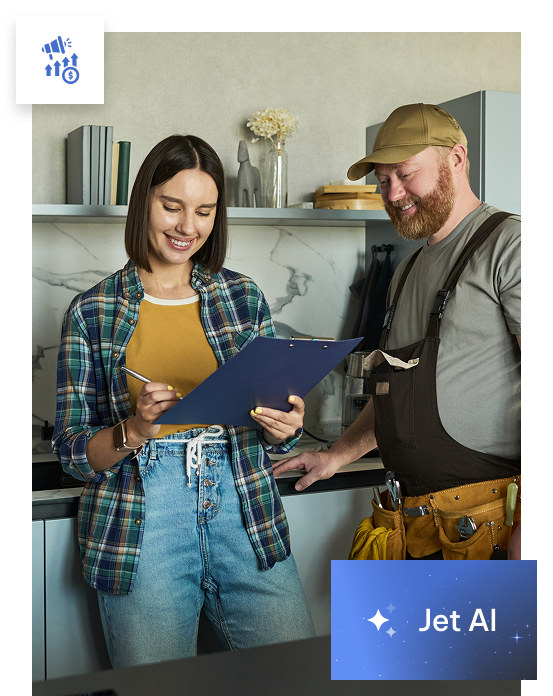 See how Jet AI can transform your phone leads into booked projects. Fill out the form to learn more about our AI call‑tracking platform and optional call‑answering service. We’ll show you how to capture and convert more leads while spending less time on the phone.